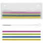 Chaque ensemble comprend quatre pailles réutilisables en silicone et une brosse de nettoyage emballées dans une pochette zippée EVA réutilisable. Ces pailles écologiques sont conformes à la FDA et sans BPA, ce qui les rend parfaites pour un usage quotidien. Chaque paille convient aux gobelets, verres et tasses jusqu'à 20 oz et est parfaite pour les smoothies, les cafés glacés ou les sodas. Conforme à la FDA, Prop 65. 11" L x 4 1/4" H x 3/8" Épaisseur.