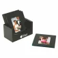 Ensemble de 4 pièces, verre, bois, boîte, absorbant l'eau, protecteur de l'humidité, verre sérigraphié, insertion d'image, pieds antidérapants, photo de 2"x3", photographie, instantané. Conforme à la proposition 65. 4 3/4" L x 4 5/8" H x 2 5/8" P.