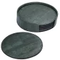 Ensemble de dessous de verre avec dessus en PU thermo et dessous en tissu tissé avec coutures. La finition style liège donne à l'ensemble un aspect naturel vieilli. Conforme à la proposition 65. 4" de diamètre x 1,25" H.