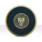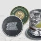 Comprend un dessous de verre en cuir et métal de taille standard avec un emblème personnalisé au centre. Conforme à la proposition 65. Diamètre de 3,5 pouces.