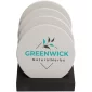 Éblouissez-les dans leur #HomeBar avec ce lot de 4 dessous de verre ronds en céramique absorbant la condensation, ornés de votre logo. Leur grande taille permet d'accueillir tous types de verres, donc ils seront toujours visibles. Ils sont résistants à la moisissure et faciles à nettoyer - il suffit de les rincer à l'eau. Les dessous de verre ont un dos en liège et le support a des pieds en mousse pour protéger les surfaces des rayures. Le lot comprend un magnifique support en bois, offrant une visibilité pour votre logo même lorsqu'il n'est pas utilisé. Ils sont conformes à la Prop 65. 0,25" H