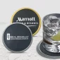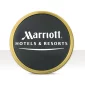 Sous-verre rond avec cuir imprimé en tons dorés ou aveugles. Conforme à la Prop 65. Diamètre de 3,5".