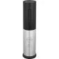 Capture et retire facilement le bouchon. Boîtier élégant en plastique noir mat et acier inoxydable. Coupe-capsule attachée. Taille compacte, facile à transporter et à ranger. Nettoyer uniquement avec un chiffon. Comprend un câble de chargement USB de type C. 2" de diamètre x 2" de largeur x 8.125" de hauteur.