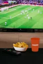 Gobelet de stade avec impression 1c. Diamètre supérieur : 9 cm - Diamètre inférieur : 6,6 cm - Hauteur : 11,1 cm - Volume : 17 oz.