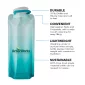 La série Gradient Vapur d'1 litre a une extérieur de couleur bleu-vert. Cette bouteille d'eau unique est réutilisable, pliable, attachable, congelable, durable et pratique. Contrairement aux bouteilles rigides traditionnelles, elle se pose à plat lorsqu'elle est vide et peut être pliée et rangée. Parmi ses caractéristiques supplémentaires, on trouve un clip de transport intégré au bouchon, des matériaux sans BPA et compatibles avec le lave-vaisselle. Impression en tampon de 1 à 4 couleurs. 12" H x 4" L x 2,5" L
