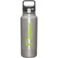 Bouteille thermique en acier inoxydable 18/8 à double paroi de 25 oz avec isolation sous vide en cuivre, couvercle à bouton-poussoir fileté à une touche, mécanisme de verrouillage, poignée de transport et base en caoutchouc. Brevet en attente. Boîte-cadeau individuelle. Lavage à la main recommandé. Ne pas mettre au micro-ondes. Conforme à la FDA, Prop 65. 11" H x 3" L.