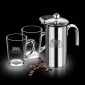 Ensemble de presse à café français en acier inoxydable spectaculaire. L'acier inoxydable de qualité restaurant 18/8 en fait un cadeau exquis qui sera chéri pendant des années. Disponible avec 2 ou 4 tasses à café. Autres styles disponibles.