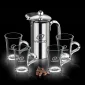 Ensemble de presse à café français en acier inoxydable spectaculaire. L'acier inoxydable de qualité restaurant 18/8 en fait un cadeau exquis qui sera chéri pendant des années. Disponible avec 2 ou 4 tasses à café. Autres styles disponibles.