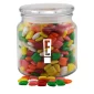Pot en verre rond. Rempli de Mini Chicklets Gum. Emballé en vrac. 3,75" L x 4,5" H