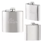 Flasque à hanche en acier inoxydable 18/8 de 6 oz avec finition métallique brossée. Couvercle en cuivre argenté vissé. 3 3/4" L x 15/16" H x 3 11/16" P