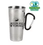 Verre à shooter en acier inoxydable brossé de 3 oz avec poignée de mousqueton noire. Laver à la main uniquement. 3 po de largeur x 3 1/2 po de hauteur.