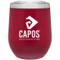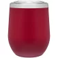 Gobelet thermique double paroi en acier inoxydable 18/8 de 12 oz avec isolation sous vide en cuivre, bord en acier inoxydable, couvercle transparent à pression et finition revêtue de poudre. Boîte cadeau individuelle. Lavage à la main recommandé. Ne pas mettre au micro-ondes. Conforme à la FDA, Prop 65. 4,625" H x 3,5" L.
