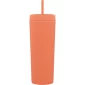 Gobelet acrylique double paroi de 17 oz avec couvercle fileté assorti, paille souple assortie et finition caoutchoutée. Lavage à la main recommandé. Ne pas mettre au micro-ondes. Conforme à la FDA, Prop 65. 8,5" H x 3,25" L.
