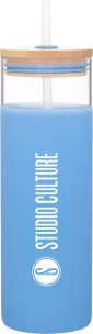 Tumbler en verre borosilicaté simple paroi de 25 oz avec couvercle à pression assorti, paille souple et manchon de protection en silicone assorti. Boîte cadeau individuelle. Lavage à la main recommandé. Ne pas mettre au micro-ondes. Conforme à la FDA, Prop 65. 9,2" H x 3" L.