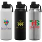 Bouteille d'eau sous vide à double paroi avec couvercle vissé étanche et poignée de transport. Notre bouteille d'eau en acier inoxydable à double paroi de 40 onces a un revêtement en poudre qui est résistant aux éclats et durable. Cette grande bouteille d'eau à double paroi peut garder les boissons froides pendant jusqu'à 6 heures. Un moyen incroyable d'aider les gens à rester hydratés tout en affichant votre logo d'entreprise toute la journée, tous les jours. Montrez les vraies couleurs de votre marque avec ColorJet. * Doit être commandé en quantités de carton complètes - multiples de 25. Conforme à la proposition 65. 10,24" H x 3,54" de diamètre.