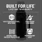 Étanche. Résistant à la transpiration. Résistant aux chocs. Adapté à l'aventure. La construction robuste et l'isolation sous vide de cette bouteille signifient qu'elle peut résister à tout, tout en gardant vos boissons chaudes chaudes et vos boissons froides froides pendant toute une journée. Assez mince pour être tenue d'une seule main, elle est même dotée d'un bouchon à vis pour un versement plus fluide. Le couvercle isolé sert également de gobelet pour boire. Isolation sous vide à double paroi. Acier inoxydable 18/8, sans BPA. Lavage à la main uniquement. 4,70" de diamètre x 4,70" de largeur x 14,01" de hauteur.