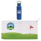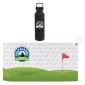 Offrez ce kit premium lors de votre prochaine sortie de golf ou événement d'entreprise et vous ferez un trou en un ! L'ensemble comprend une bouteille isolée sous vide de 16 oz avec un couvercle élastique et une serviette de golf de 12" x 24" avec un œillet et un clip pour l'attacher à votre sac de golf. Sublimation en couleur complète sur la serviette. 10 1/2" H x 3" de diamètre.