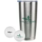Ensemble cadeau de golf avec manchon de 0683 balles de golf Wilson Chaos à l'intérieur d'un gobelet Aspen de 20 oz. Le gobelet est en acier inoxydable à double paroi, doublure en cuivre, isolé sous vide, garde les boissons chaudes ou froides jusqu'à six heures ! Finition enduite de poudre sur noir, blanc, marine ! Lavage à la main uniquement, répond aux exigences de la FDA, sans BPA. Conforme à la CPSIA, à la FDA, à la proposition 65. 7 1/5" H x 3" de diamètre.