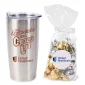 Gobelet sous vide en acier inoxydable de 20 oz. livré avec des oursons gélifiés Clever Candy dans un sac. Isolation sous vide à double paroi. Sans BPA. Garde les boissons froides pendant 24 heures ou chaudes pendant 6 heures. Construction en acier inoxydable avec doublure intérieure en acier inoxydable. Couvercle à action coulissante résistant aux fuites avec joint d'étanchéité. Le sac contient un gobelet de 6 oz. d'oursons gélifiés Clever Candy avec un nœud papillon blanc. Choisissez parmi les illustrations en stock avec impression ou personnalisez le gobelet et le sac avec votre logo/impression. 7" H x 3.5" de diamètre.