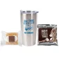 Gobelet sous vide en acier inoxydable de 20 oz. avec un paquet de cacao chaud et un mini paquet de smores. Isolation sous vide à double paroi. Sans BPA. Garde les boissons froides pendant 24 heures ou chaudes pendant 6 heures. Construction en acier inoxydable avec doublure intérieure en acier inoxydable. Couvercle à action coulissante résistant aux fuites avec joint d'étanchéité. Paquet de cacao chaud à usage unique avec étiquette en couleur pleine. Mini paquet de smores. 7" H x 3,5" de diamètre.