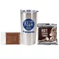 Gobelet sous vide en acier inoxydable de 20 oz. livré avec un paquet de cacao chaud et un cookie rectangle au chocolat. Isolation sous vide à double paroi. Sans BPA. Garde les boissons froides pendant 24 heures ou chaudes pendant 6 heures. Construction en acier inoxydable avec doublure intérieure en acier inoxydable. Couvercle à action coulissante résistant aux fuites avec joint d'étanchéité. Paquet de cacao chaud à usage unique avec étiquette en couleur pleine. Cookie rectangle avec moule standard (Merci ou Joyeuses Fêtes) ou vierge. 7" H x 3,5" de diamètre.
