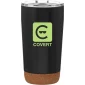 Gobelet thermique double paroi en acier inoxydable 18/8 de 16 oz avec isolation sous vide en cuivre, couvercle transparent à fermeture coulissante et base en liège synthétique. Boîte cadeau individuelle. Lavage à la main recommandé. Ne pas mettre au micro-ondes. Conforme à la FDA, Prop 65. 6,5" H x 3,5" L.