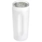 Ce gobelet est composé d'une construction en acier inoxydable 18-8 à double paroi et d'une doublure profonde isolée sous vide en cuivre qui maintient les températures de consommation optimales 8 fois plus longtemps. Design sans condensation. Comprend un couvercle transparent vissé avec un bouton coulissant. Finition durable en poudre. Garantie limitée d'un an. Brevet en instance. 7,75" H x 3,25" L x 3,25" P