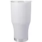 Tasse thermique double paroi en acier inoxydable 18/8 de 28 oz avec isolation sous vide en cuivre, couvercle transparent en Tritan Eastman avec boutons-poussoirs, et finition revêtue de poudre. Brevet en attente. Boîte cadeau individuelle. Lavage à la main recommandé. Ne pas mettre au micro-ondes. Conforme à la FDA, Prop 65. 8" H x 4" L.