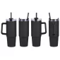 La tasse Octava de 30 oz en acier inoxydable/polypropylène est une imitation populaire des modèles de vente au détail. Fabriquée avec une coque extérieure en acier inoxydable et une doublure intérieure en polypropylène noir. Livrée avec un couvercle vissé transparent doté d'une fonction anti-fuite à paroi haute et d'un couvercle pivotant à 3 positions assorti en couleur. Livrée également avec une paille noire assortie avec un anneau pour la maintenir en place, et une poignée en plastique assortie qui mesure 4" de hauteur et dépasse de 1-1/4" à la partie la plus large. Garde les boissons chaudes ou froides pendant jusqu'à 3 heures. Lavage à la main uniquement. Sans BPA. Conforme aux normes FDA, Prop 65. 9,375" H x 3,5" de diamètre.