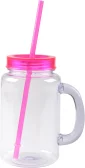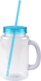 Ce bocal à boire transparent est livré avec un couvercle coloré et une paille. 6" H