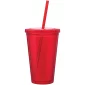 Gobelet acrylique double paroi de 16 oz avec couvercle vissé et paille souple assortie. Lavage à la main recommandé. Ne pas mettre au micro-ondes. Conforme à la FDA, Prop 65. 6,25" H x 4" L.