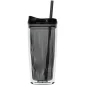 Gobelet acrylique double paroi de 16 oz avec paroi extérieure transparente, paroi intérieure géométrique colorée, couvercle pivotant double usage à pression, et paille souple assortie. Brevet #D732,889. Boîte cadeau individuelle. Lavage à la main recommandé. Ne pas mettre au micro-ondes. Conforme à la FDA, Prop 65. 7,875" H x 3,375" L.