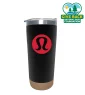 Gobelet en acier inoxydable mat de 20 oz, à double paroi, scellé sous vide, avec base en liège et couvercle à enfoncer avec ouverture coulissante. Lavage à la main uniquement. 3" L x 7 1/2" H