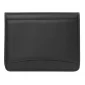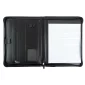 Fabriqué en cuir végétalien Doublure en feutre Fermeture à glissière Pochette avant à accès rapide Compartiment pour tablette Passants pour stylos Sections organisationnelles Emplacements pour cartes Fenêtre pour carte d'identité Poche intérieure zippée Bloc-notes au format lettre inclus 13" H x 10" L x 1,5" P