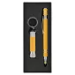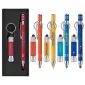 Cet ensemble cadeau comprend deux articles populaires en caoutchouc doux : le stylo en métal Marin Softy avec un stylet à l'extrémité de la bille, et le porte-clés lampe de poche LED Chroma Softy. Les deux articles sont dotés d'élégants accents chromés. Les articles sont emballés et présentés de manière élégante dans une boîte cadeau grise stylée. Fait un excellent cadeau pour les événements d'entreprise, les programmes de fidélité client, et bien plus encore ! Les deux articles assortis peuvent être personnalisés avec une impression en couleur (technologie ColorJet). Conforme à la proposition 65. 2,77" L x 6,77" l x 0,81" H.
