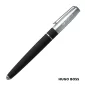 Le stylo à bille "Illusion" est présenté avec des textures et des proportions pour créer une illusion d'optique, mettant en avant une silhouette parfaitement équilibrée. Cette version classique présente des rayures noires mates et des accents chromés nets.