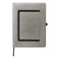 Grand journal avec une couverture en PU thermo texturé comportant une poche élastique horizontale pour smartphone sur la couverture avant. Comprend environ 96 feuilles lignées de papier crème de 80g. Dispose d'un support élastique pour stylo (stylo vendu séparément) et d'un marque-page en ruban. La poche avant mesure environ 5" de large x 7" de haut (convient à la plupart des smartphones). Poche pour documents à l'intérieur de la couverture arrière. Conforme à la Proposition 65. 7,5" L x 9,875" H x 0,78" P.