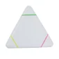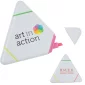 Mettez en valeur votre logo d'entreprise avec ce surligneur néon en forme de triangle. Le boîtier en plastique présente 3 couleurs néon vives, une à chaque pointe, en vert, jaune et rose. Conforme à la CPSIA, Prop 65. 3,5" L x 3,5" l x 0,33" P.