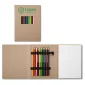 Cet ensemble de dessin avec couverture en kraft/carton comprend 10 crayons de couleur en bois (noir, bleu, vert, vert citron, orange, rose, violet, rouge, beige, jaune) maintenus par un élastique noir et 1 taille-crayon en bois. Il contient également 50 feuilles de papier blanc de 80 GSM. Informations CPSIA sur la couverture arrière. 5,75" L x 8,25" H x 0,75" P