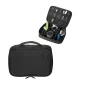 Fermeture de l'étui technologique à double fermeture éclair à deux tons sur trois côtés pour un accès facile au contenu. Poignée de transport supérieure avec poche avant ouverte. L'intérieur comprend trois séparateurs détachables qui se fixent avec des attaches auto-agrippantes et cinq fentes en mesh élastique. Doublure intérieure en 210T/PU avec rembourrage en mousse de 3 mm pour protéger vos accessoires technologiques. Gardez tous vos gadgets technologiques organisés au même endroit. Contenu non inclus. Conforme à la proposition 65. 9" L x 6,5" H x 2,25" P