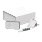 Le kit DeskSaver Music comprend trois produits pratiques pour améliorer votre expérience de travail à domicile. Un mini haut-parleur Bluetooth peut fournir une ambiance apaisante ou être utilisé avec le microphone intégré pour les appels de conférence. Le support de téléphone ajustable garde votre téléphone en avant et au centre tandis que l'organisateur de câbles maintient votre bureau organisé. L'ensemble cadeau est emballé dans une belle boîte cadeau blanche avec fermeture magnétique et insert en mousse. Comprend la marque sur le dessus de la boîte et sur chacun des 3 produits. Conforme à Prop 65, REACH, RoHS. 7,5" L x 7,5" l x 2,5" P.