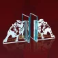 Les figures classiques de taureaux des échanges financiers, symboliques des tendances opposées du marché, gravées dans du verre de jade en forme d'aqua et soutenues par des rectangles de jade biseautés. Des images particulièrement appropriées pour des serre-livres assortis, surtout pour les secteurs des services financiers, de l'investissement, de la bourse et de la banque !