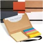 Un produit Eco-Responsable™ avec une couverture avant fabriquée à 65% de matériau recyclé (une partie est pré-consommateur et une partie est post-consommateur), les feuilles intérieures sont fabriquées à 20% de matériau recyclé pré-consommateur. Il comprend cinq marque-pages adhésifs assortis et un bloc-notes adhésif jaune, chacun de 25 feuilles. Il est doté d'une poche interne pour cartes de visite et d'une fermeture élastique pouvant contenir jusqu'à 6 cartes de visite. La zone d'impression réduite pour les commandes multicolores est de 2 pouces carrés (impression par tampon). Conforme à la proposition 65. 2,625 pouces de largeur x 4,5 pouces de hauteur x 0,25 pouces de profondeur.