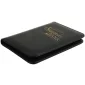 Un étui pratique en similicuir noir avec une calculatrice à 6 fonctions et un carnet. Un bloc-notes avec 30 feuilles lignées est inclus. 4 1/2" L x 6 1/4" H x 1/2" P