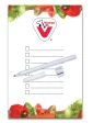 Tableau mémo sans fioritures avec des coins carrés. Comprend une plastification d'un côté, un marqueur à encre noire effaçable à sec (barillet blanc), un support de stylo en plastique autocollant et un aimant sur le dos du tableau mémo. Stylo effaçable à sec avec support de stylo autocollant, pouvant être placé sur ou à côté du tableau mémo. 5 3/4" L x 8 3/4" H