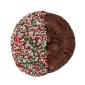 Ravissez tout le monde sur votre liste de cadeaux avec ces délicieux biscuits sablés au chocolat de Noël. 8 biscuits sablés au chocolat sont trempés à moitié dans du chocolat au lait et recouverts de nonpareils festifs. Tous les biscuits sont emballés individuellement et emballés joliment dans une boîte-cadeau souvenir avec un couvercle imprimé en couleur. Les biscuits ont une durée de conservation de 6 mois. 7 3/16" L x 2 5/8" H