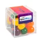 Des boules de bonbons acidulés colorées présentées dans un cube en acrylique illumineront la journée de quiconque. Empilées, elles offrent une présentation attrayante. Nous proposons une variété de couleurs de bonbons pour correspondre à vos couleurs d'entreprise ou au thème de votre événement. Ajoutez une étiquette avec le logo de l'entreprise ou de l'événement pour renforcer la présentation. Conforme à la CFIA, la FDA, la SQF. 2,25" L x 2,25" l x 2,25" P.