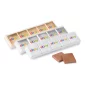 Boîte en acétate transparent contenant 10 carrés de chocolat enveloppés. 10 pièces de chocolat. Boîte en acétate transparent. Impression couleur pleine sur le papier d'aluminium. 1 5/16" L x 6 5/16" H