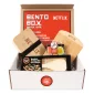 La boîte d'expédition est livrée avec une boîte à lunch Bento en bambou, une petite planche à découper en bambou, un tapis roulant et un ensemble de pagaies, ainsi qu'un paquet de sushis en bonbons. Le dessus de la boîte présente une illustration "Just Roll With It" standard. L'étiquette intérieure répertorie les contenus et présente votre logo ou une personnalisation complète. Ce kit contient vraiment tout SAUF les sushis ! 12 1/8" L x 9 1/4" W x 4" H