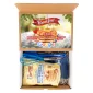 Mélange pour crêpes et gaufres au babeurre de 24 oz, spatule en silicone, fouet en silicone et manique de four. La manique de four doit être lavée à la main. 11" L x 8" W x 4" H